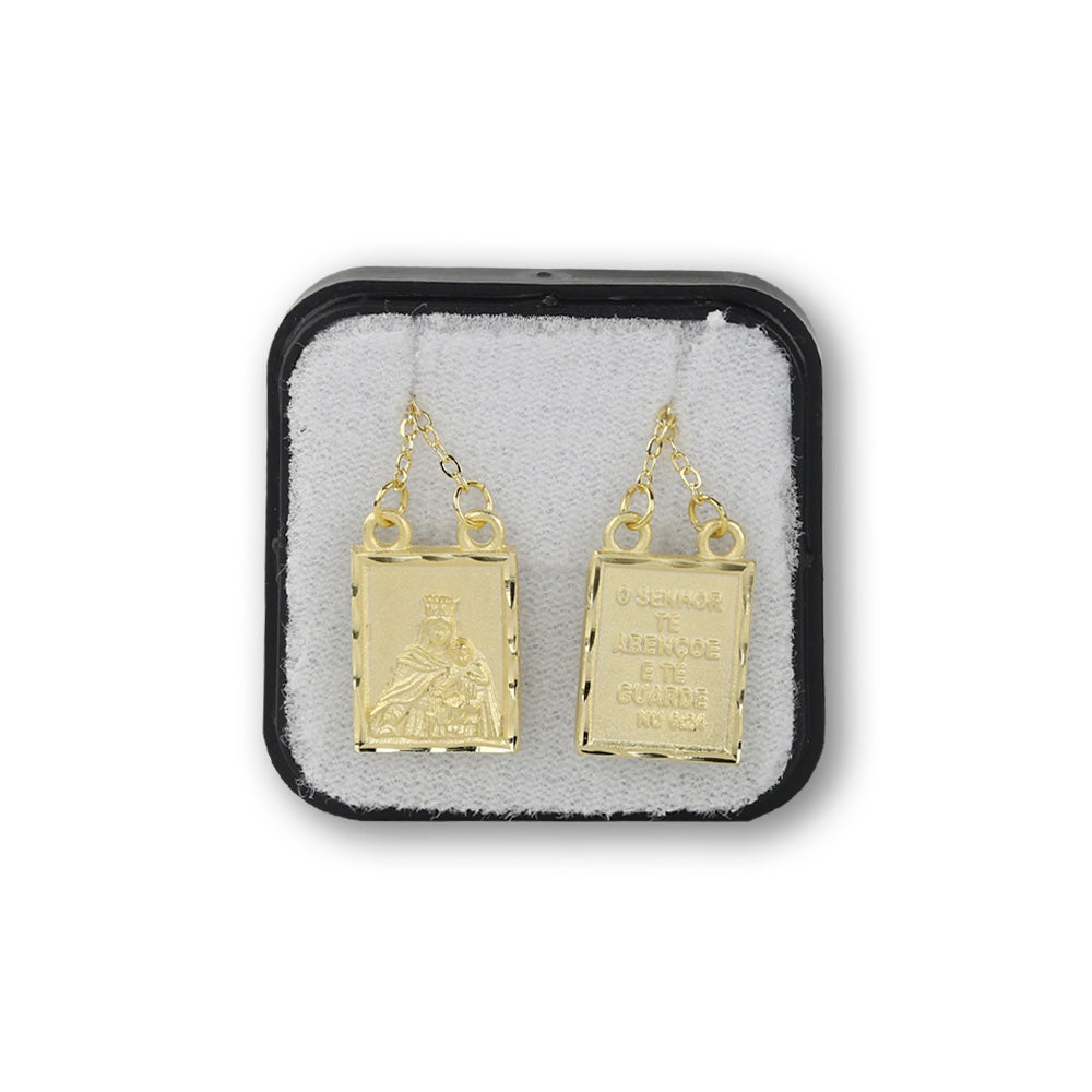 Gold-plated scapular with the medal of Our Lady of Mount Carmel and the Sacred Heart of Jesus.