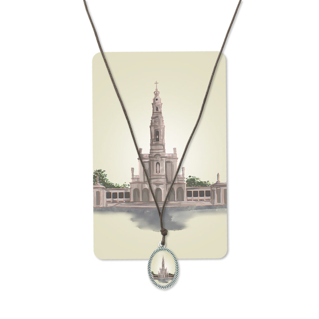 Sanctuary of Fátima Necklace adjustable as you wish, including card with prayer in the selected language.