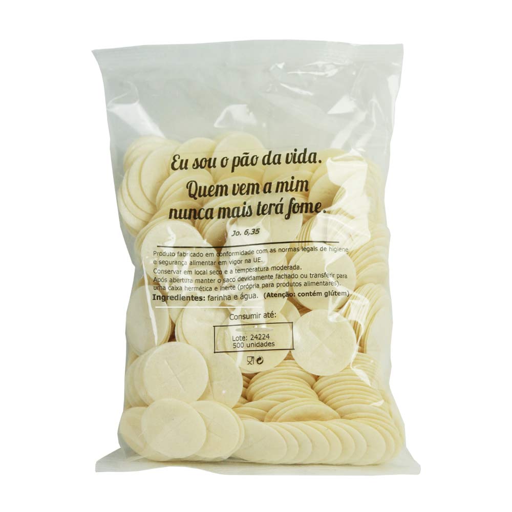 Coarse particles 500 units diameter 3.5 cm. Particles to be distributed to the faithful of a slightly yellowish color and of a thickness (1 mm) very similar to bread.