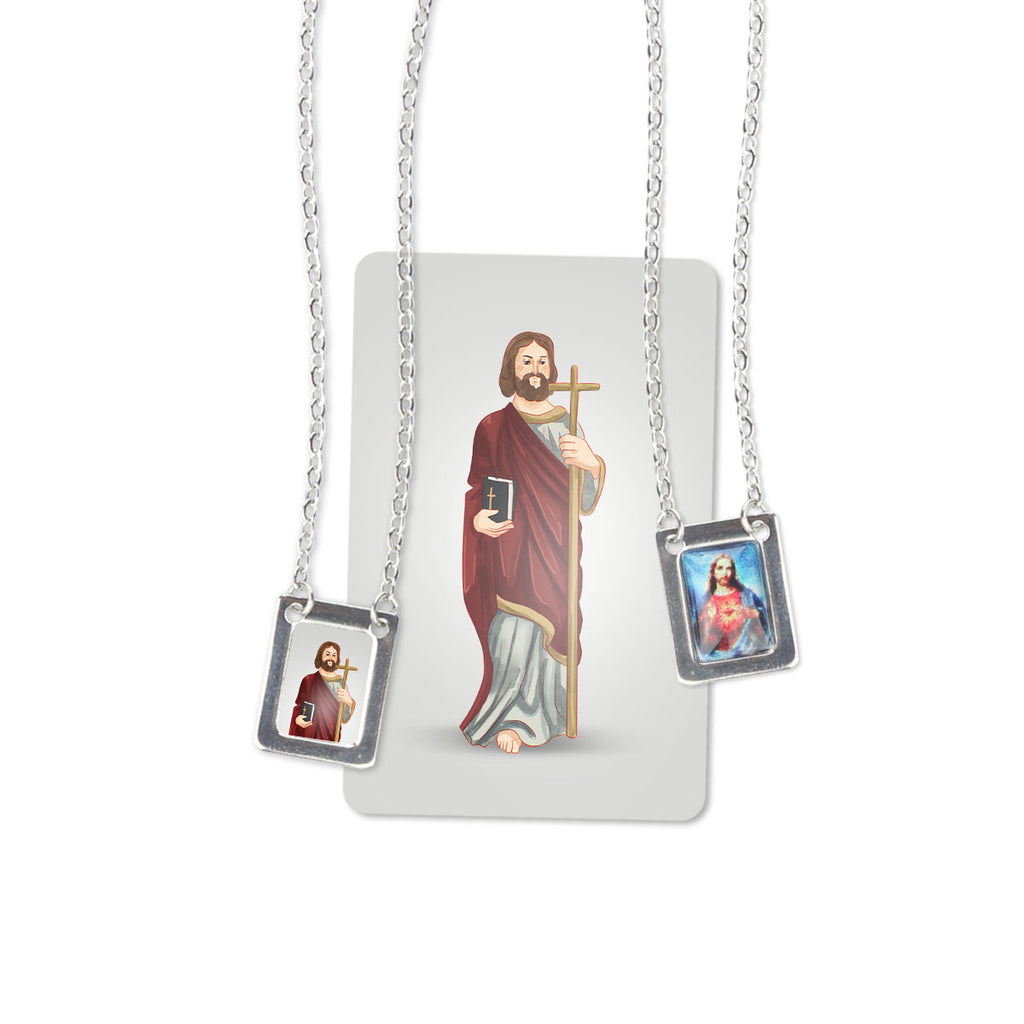 Catholic scapular in stainless steel, with an image of Saint Philip, including a prayer card in the selected language. Length 30 cm