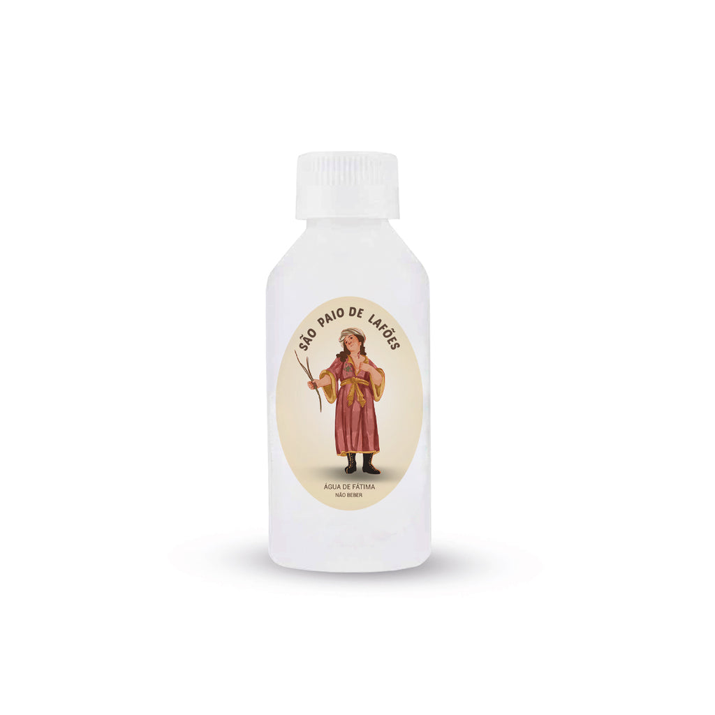 Plastic bottle with water from Fátima, city of Peace and Catholic miracles. The bottle is illustrated with the image of Saint Pelagius of Lafões, ideal for blessing your beloved belongings. Measurements: 12 cm x 5 cm x 5 cm - Capacity: 100ml