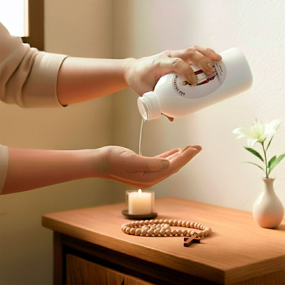 Plastic bottle with water from Fátima, city of Peace and Catholic miracles. The bottle is illustrated with the image of Saint Valentine, ideal for blessing your beloved belongings. Measurements: 12 cm x 5 cm x 5 cm - Capacity: 100ml