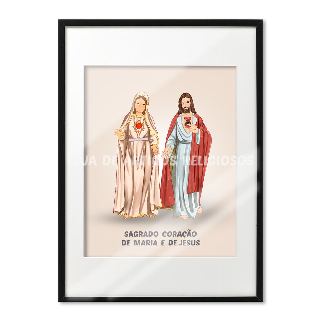 Poster of Sacred Heart of Jesus and Mary with high quality printing on 250g photographic paper.