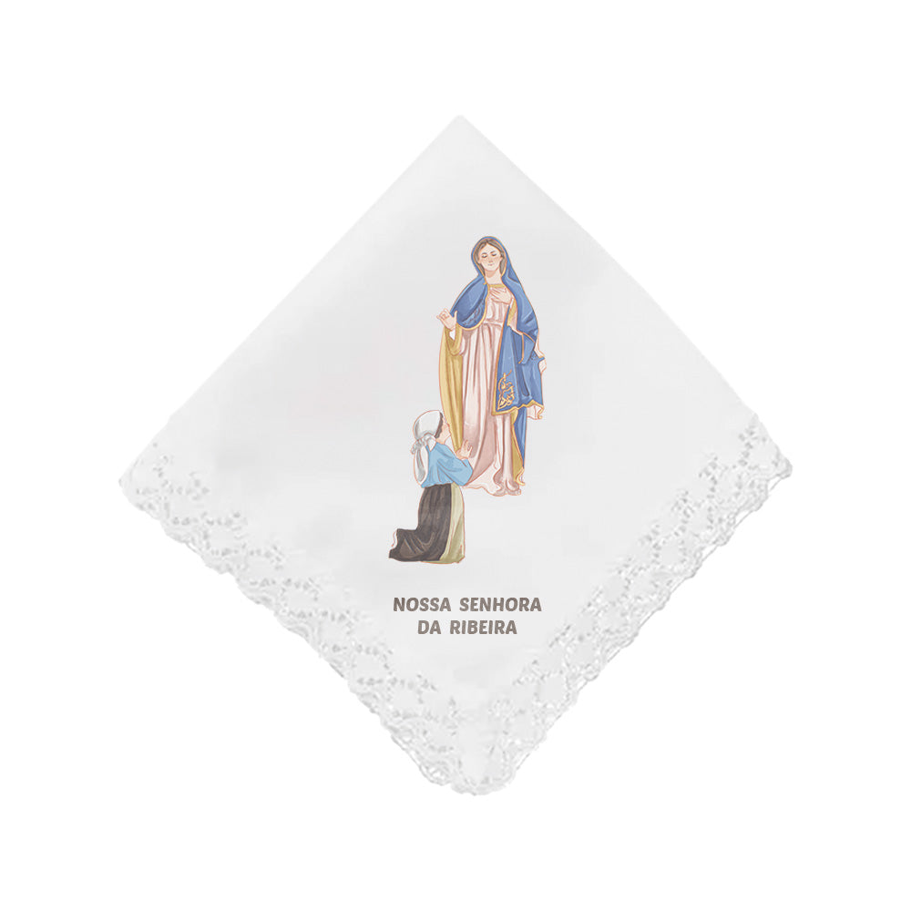 This handkerchief is a special piece of devotion and tradition. Made from high-quality white fabric, it features delicate lace details, bringing a touch of elegance and sophistication. Perfect for moments of prayer, processions and religious celebrations, it is also ideal for use as a decorative element.