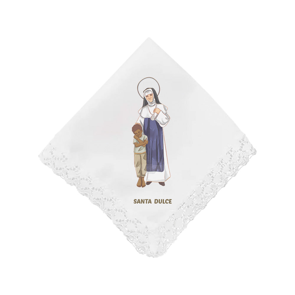 This handkerchief is a special piece of devotion and tradition. Made from high-quality white fabric, it features delicate lace details, bringing a touch of elegance and sophistication. Perfect for moments of prayer, processions and religious celebrations, it is also ideal for use as a decorative element.