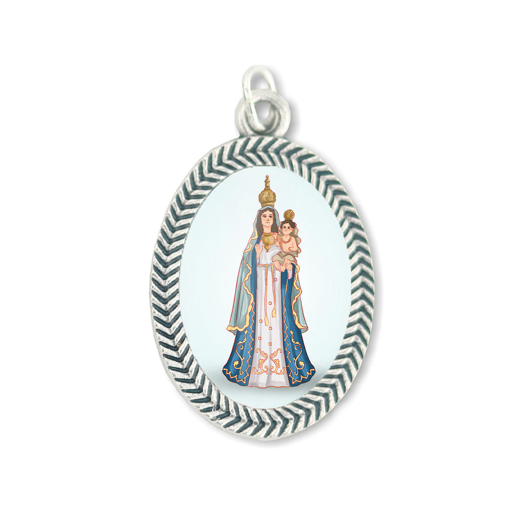 Our Lady of Help Medal in silver metal.