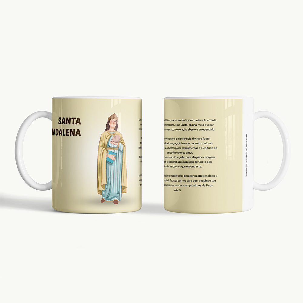 Saint Magdalene mug with prayer, a perfect mug for those looking for a spiritual connection during meal times.