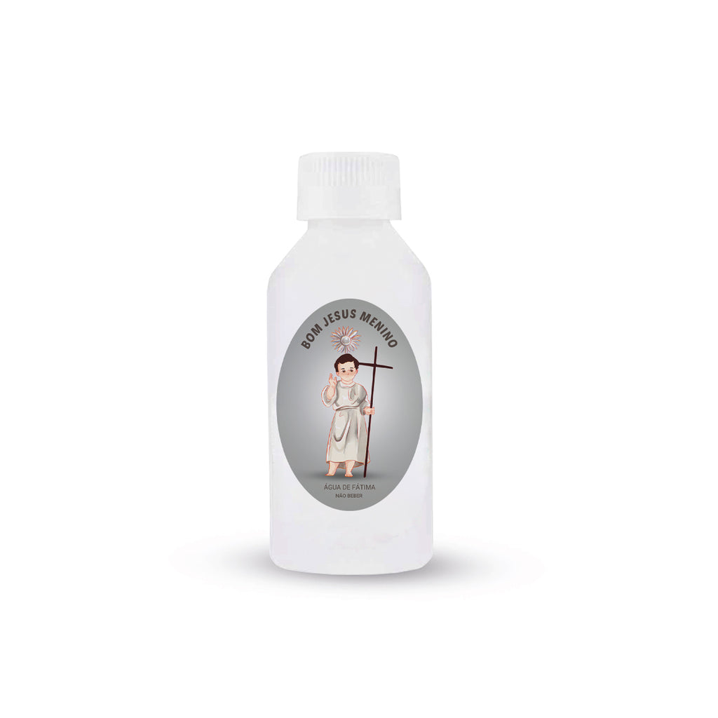 Plastic bottle with water from Fátima, city of Peace and Catholic miracles. The bottle is illustrated with the image of Baby Jesus, ideal for blessing your beloved belongings. Measurements: 12 cm x 5 cm x 5 cm - Capacity: 100ml