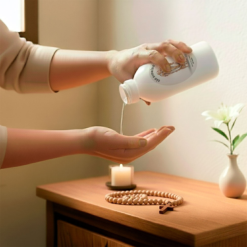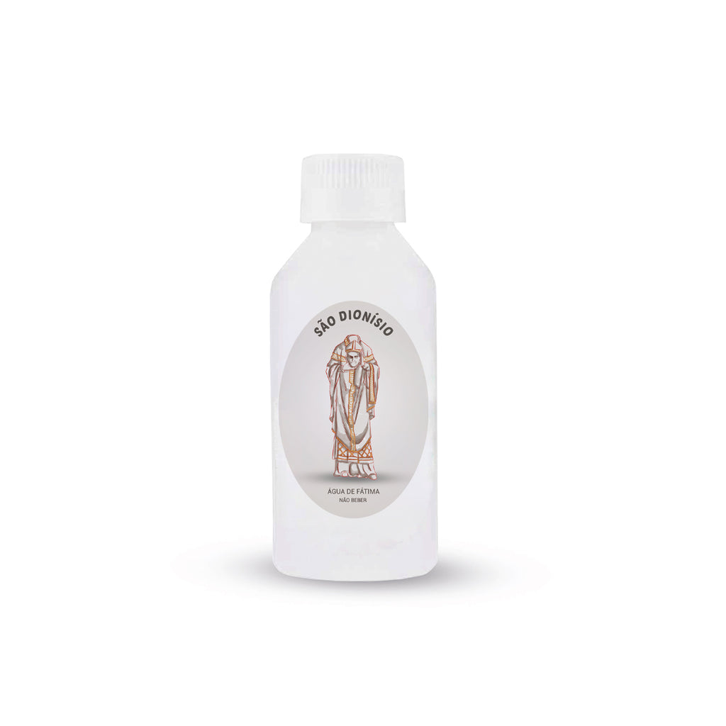 Plastic bottle with water from Fátima, city of Peace and Catholic miracles. The bottle is illustrated with the image of Saint Dionysius, ideal for blessing your beloved belongings. Measurements: 12 cm x 5 cm x 5 cm - Capacity: 100ml