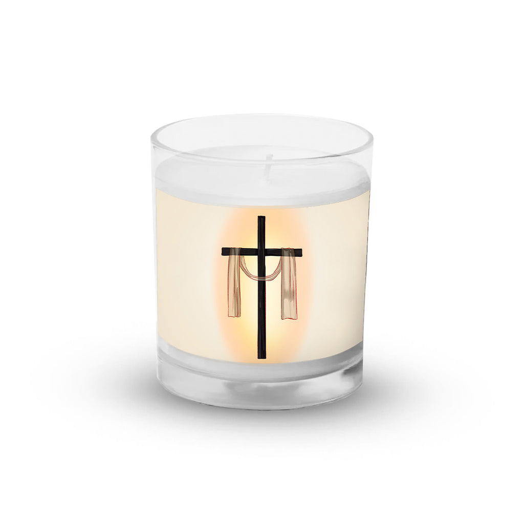 Decorative Holy Cross candle made from 100% natural wax with a personalized scent for each Catholic saint. Measurements: 8 cm x 4 cm