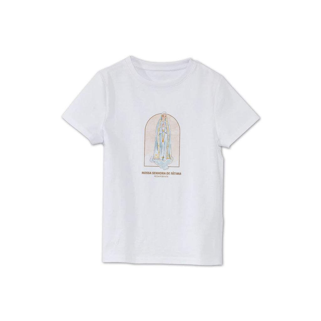 Original and detailed illustration of Our Lady of Fátima Capelinha on a 100% cotton unisex t-shirt.