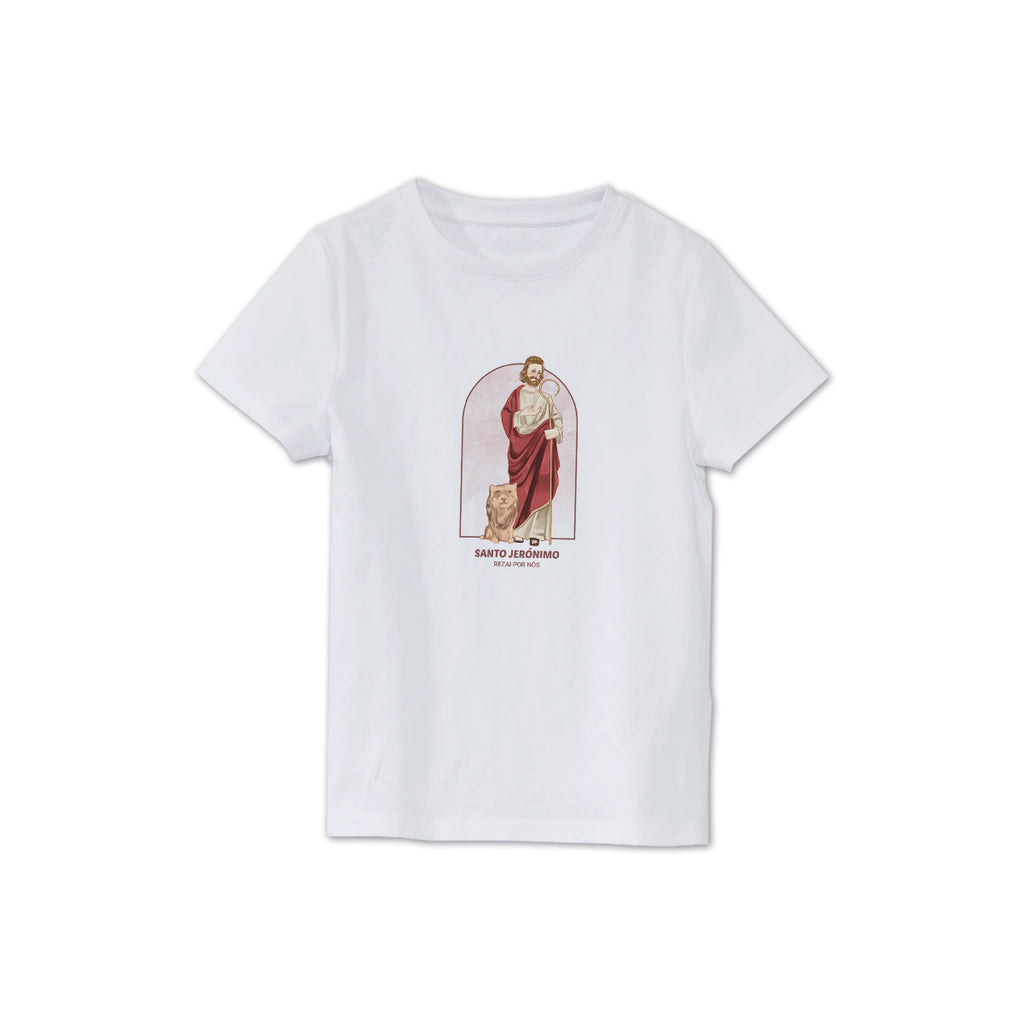 Original and detailed illustration of Saint Jerome on a 100% cotton unisex t-shirt.