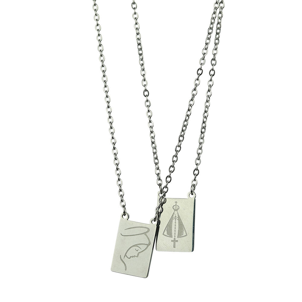 Scapular of Our Lady Aparecida and face of Our Lady of Fatima in high quality stainless steel.