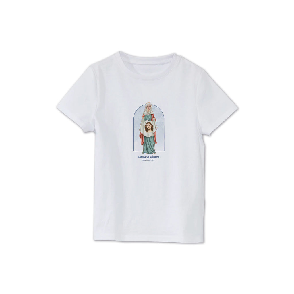 Ilustração original e detalhada de Santa Verônica em camiseta unissex 100% algodão.